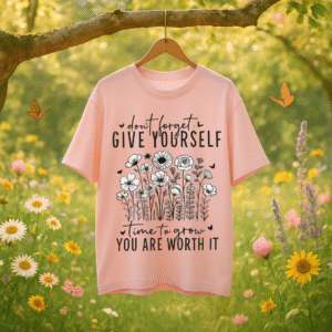 Step into your soft power with the Bloom & Beyond tee — a gentle reminder that growth is messy, beautiful, and entirely worth it. This piece from the StarFreak Self-Love Series features hand-drawn wildflowers and the soulful affirmation: “Don’t forget to give yourself time to grow. You are worth it.”