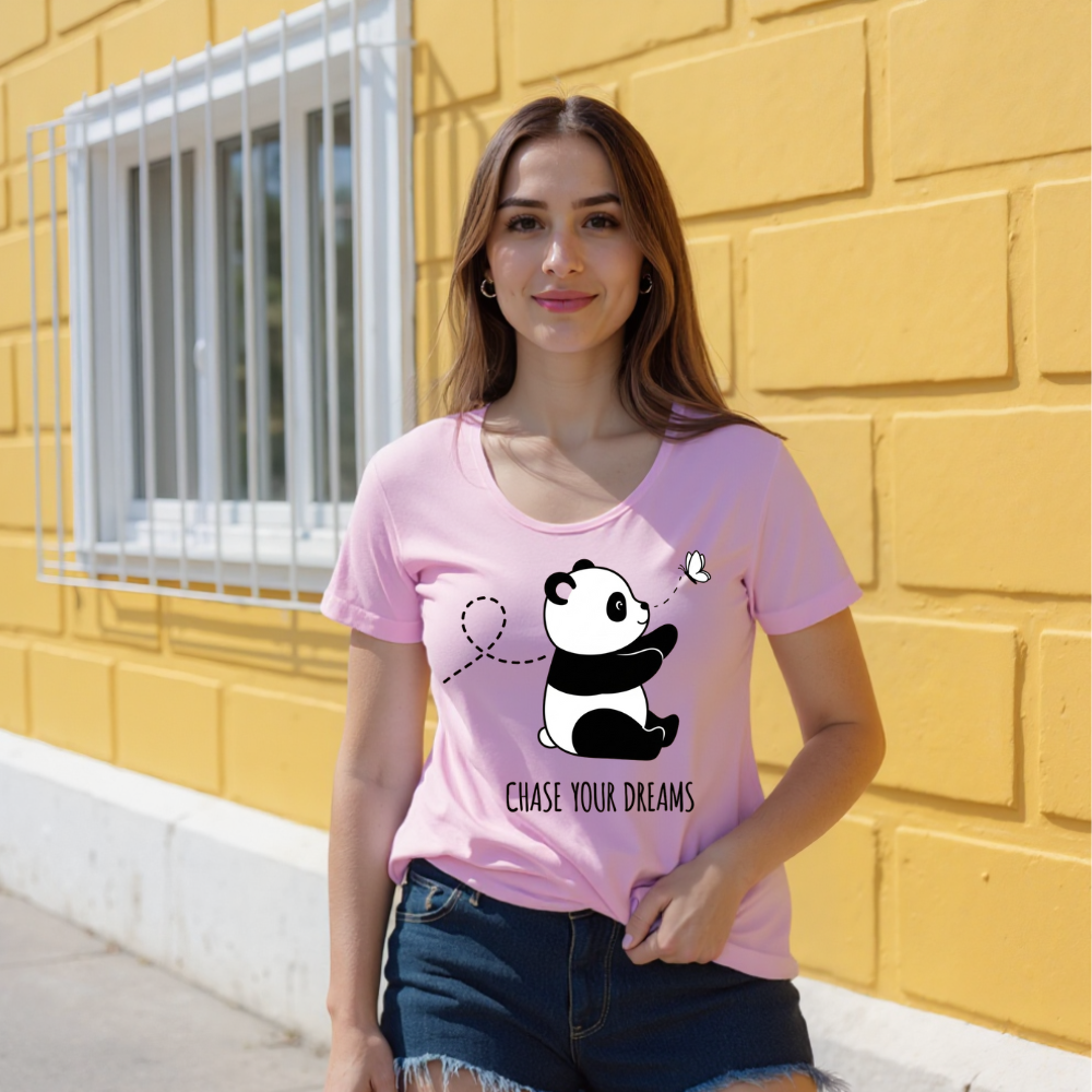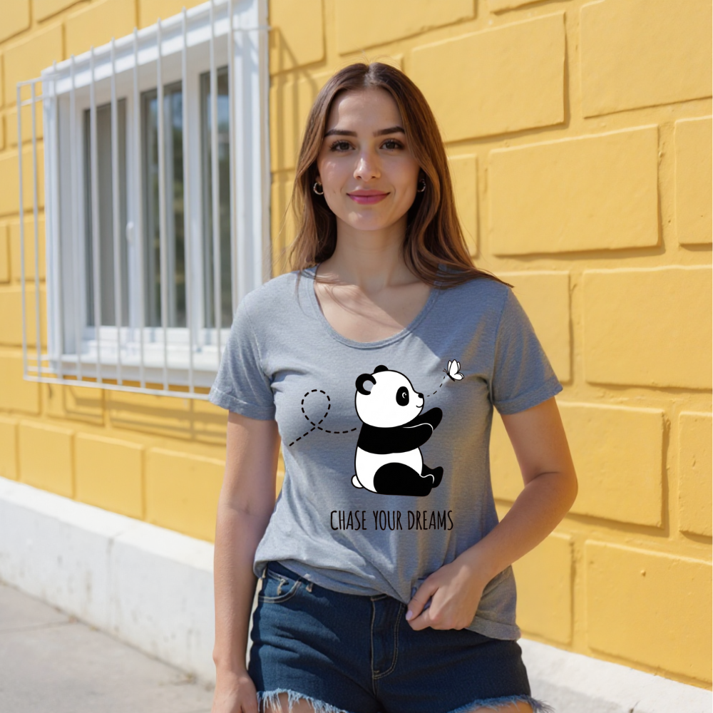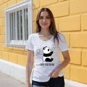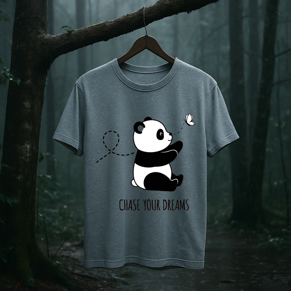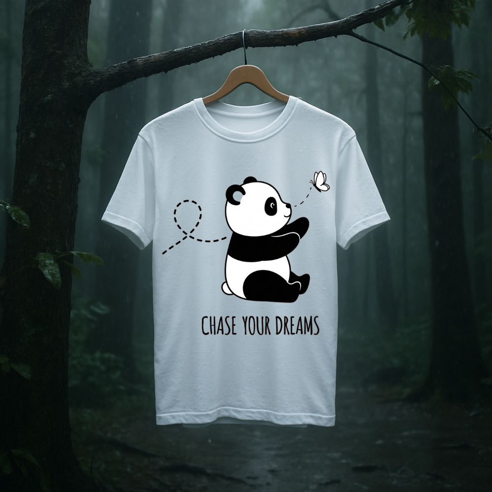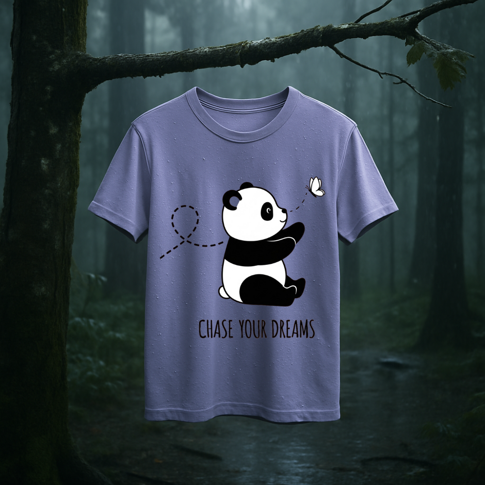 Drift into a world where dreams take the lead with the Chase & Chill – Panda Dreams Edition. Featuring an irresistibly cute panda in pursuit of a fluttering butterfly, this tee captures the beauty of slowing down and chasing what truly matters. Crafted for those who live softly but dream boldly, it blends comfort and charm into one serene, wearable mood.
