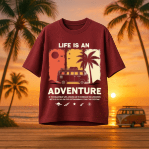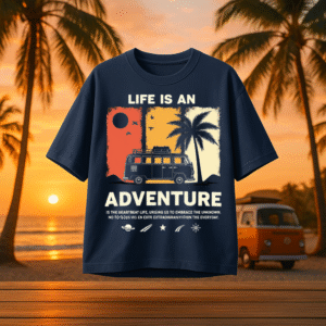 Unleash your inner explorer with the Life Unmapped – StarFreak Travelcore Tee. Designed for the wild-hearted and road-ready, this tee captures the spirit of spontaneous getaways and sunset horizons. The retro camper print and sunset palette evoke nostalgic freedom, while the soft cotton fabric ensures you’re adventure-bound in comfort and style. Whether you’re chasing coastlines or weekend escapes, this piece is your go-to for living off the map and outside the ordinary.