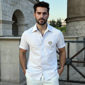 Refined. Distinguished. Timeless. The Noble Emblem – Classic White Shirt is more than just a wardrobe essential — it is a statement of elegance.