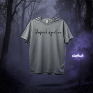 Paired with the clean Starfreak Signature on the front, this tee blends minimalist streetwear with cinematic darkness. Built for those who walk alone, and never follow.