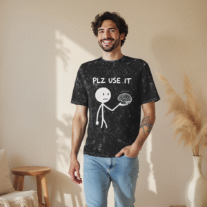 Level up your streetwear game with the “Plz Use It” Sarcasm Edition Tee – where humor meets attitude. This deep maroon tie-dye t-shirt features a bold graphic of a stick figure holding a brain, paired with the cheeky phrase “PLZ USE IT.” Crafted from premium-quality fabric, it’s not just a fashion statement – it’s a whole mood. Perfect for those who love sarcasm served with style, this tee is breathable, unisex, and ideal for everyday slay or content creation.