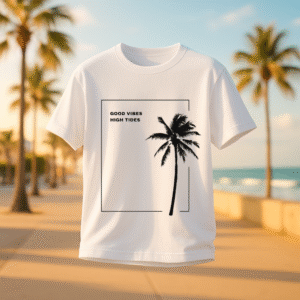 Channel laid-back luxury with the Solscape – High Tides Edition, a modern essential for those who live by the rhythm of the sun and sea. Featuring a minimalist black palm framed within a clean line composition, the design whispers calm with its quote: “Good Vibes, High Tides.”