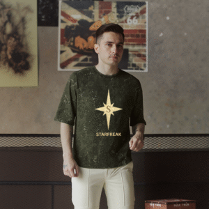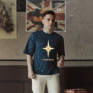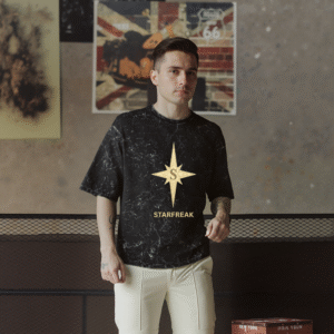 The NorthFreak Drop is more than a tee — it’s a symbol of fearless individuality. Featuring the Starfreak golden compass emblem on a rugged acid-wash black canvas, this oversized piece speaks to those who don’t follow trends — they create them.