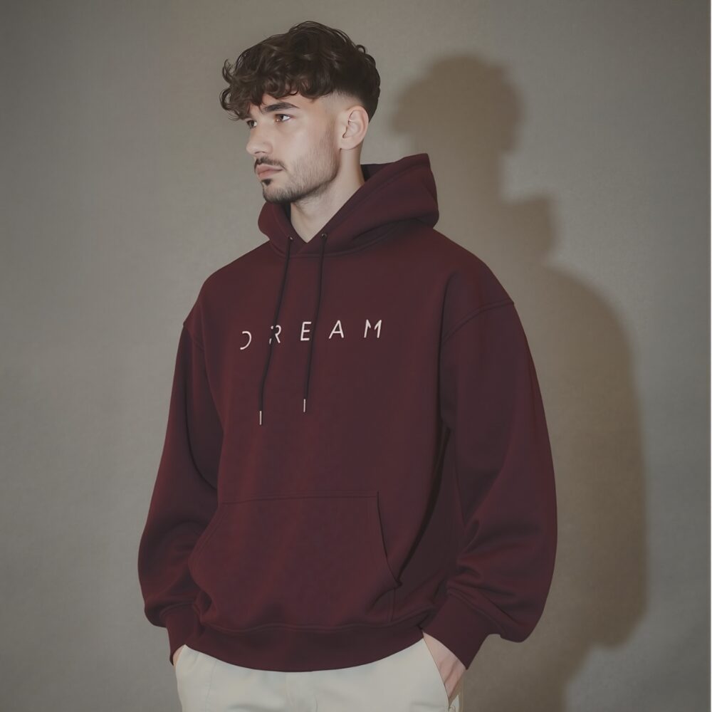 The Reverie Oversized Hoodie – In A State of Dream embodies understated luxury and effortless elegance. The minimalist “DREAM” detailing reflects a refined sense of calm and ambition.